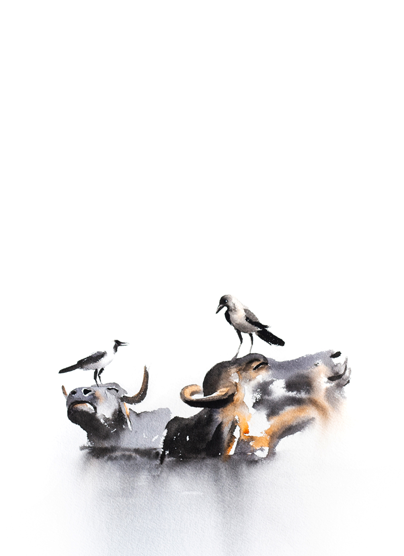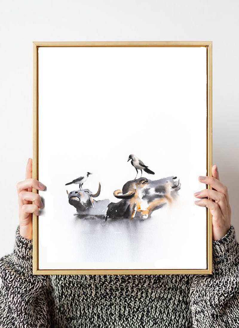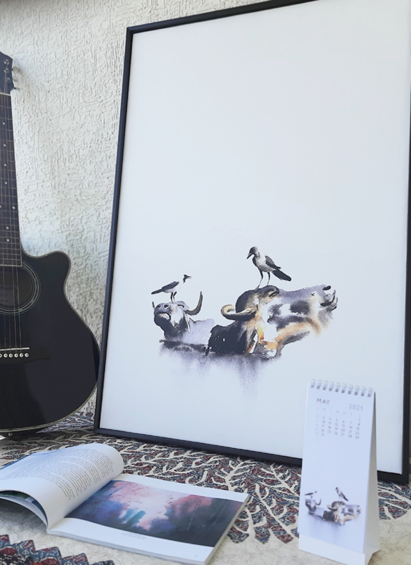 Painted on 300 gsm arches paper and printed on best cotton canvas, with artist’s signature.